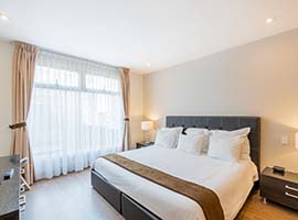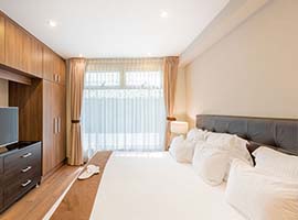 The main bedroom has 1 king bed, TV, speaker, telephone with active service for local calls and air conditioning and heating system. The secondary bedroom has 2 twin beds. The kitchen is equipped with stove, refrigerator, coffee maker, dishes, cookware, nespresso coffee maker and other kitchen utensils. There is also a washer / dryer machine in the apartment.