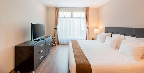 The apartment rent includes the following services: Daily room cleaning (Monday through Saturday), High-speed Internet, Continental breakfast (Monday through Saturday), 24/7 Security, Elevator, Free local phone, Cable TV.